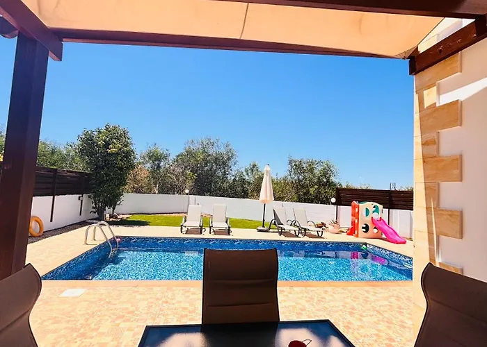 На оснащённой всем необходимым кухне есть микроволновая печь, кофеварка и кухонная утварь для комфортного пребывания гостей. Ресторан Glasshouse Lounge Restaurant, предлагающий блюда средиземноморской кухни, находится в 1 км. Ближайшая автобусная остановка Landa Beach 2 находится на расстоянии 5-минутной прогулки. Среди возможностей для отдыха - патио, принадлежности для барбекю и сад, а также личный бассейн.